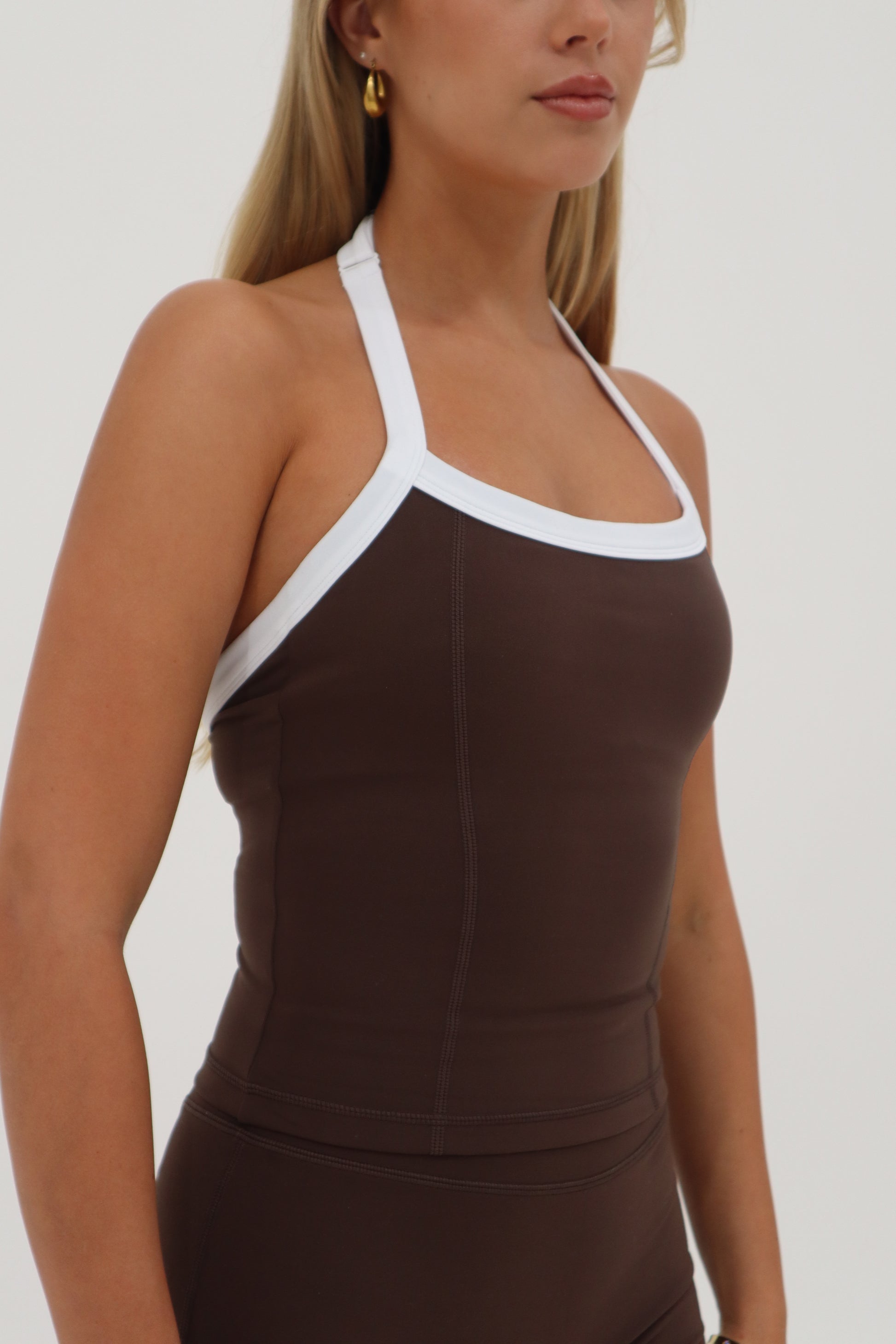 This top and the matching shorts are to die for!! They are so flattering and I love that the halter neck can be adjusted! My new fave workout set 😍😍
